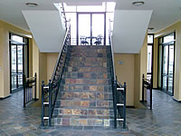 - Wrought Iron and chrome balas trading on the main stairs and balconies